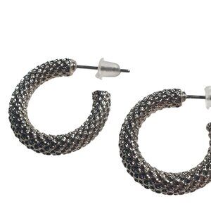 Metal Textured Hoop Earrings Post Back Silver Tone Pierced Fashion Gift Mom Core