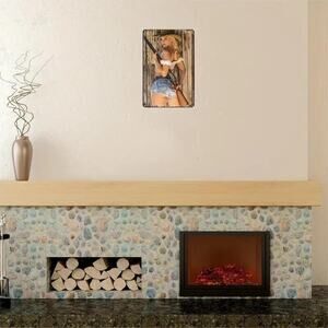 Metal Tin Sign •Blonde Cowgirl Pinup •Hot Pants •Marlin 1894 Octagon Barrel 8x12