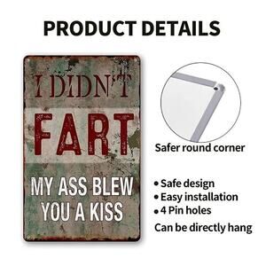 Metal Tin Sign • I Didn’t Fart • My Ass Blew You A Kiss • Humorous •Funny • Retro