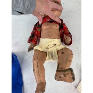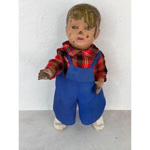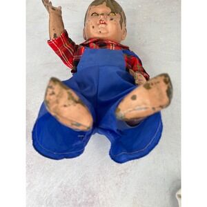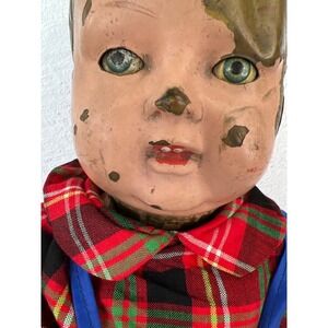 Metal Tin Vintage Antique Doll Creepy Large Eyes Move Cast Rare Boy Guy