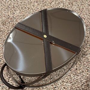 Metal Tin bucket with faux leather handles and straps