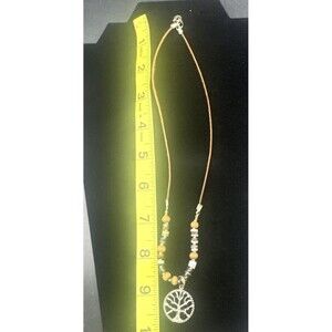 Metal Tree of Life Necklace W/ Brown Thin Leather & Beads 10”