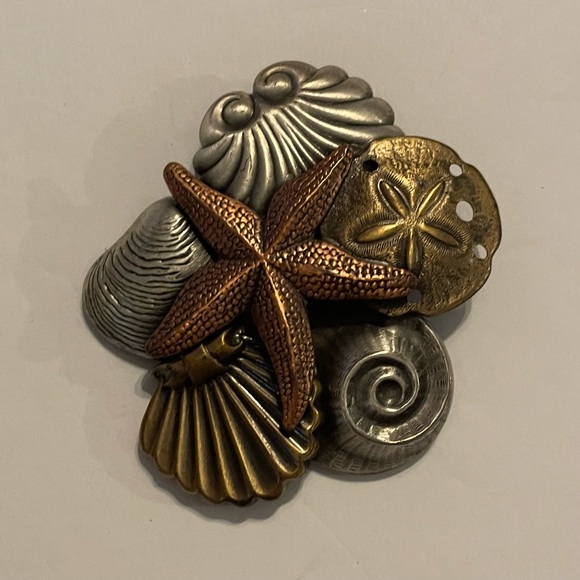 Pretty seashell brooch, pre- owned in good condition. Three metal colors.