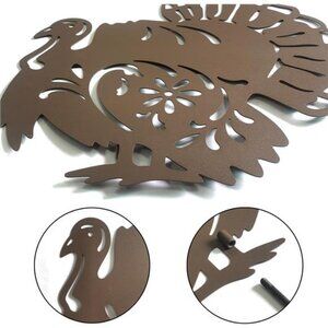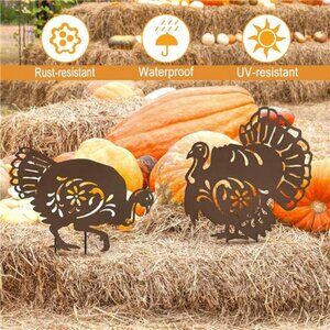 Metal Turkey Garden Stakes Set of 2 Outdoor Thanksgiving Yard Decor Rusty