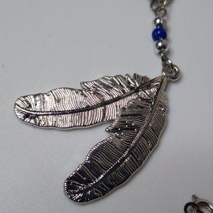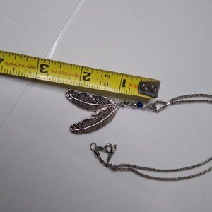 Metal Two Feather Pendant Necklace 18.5 Inches