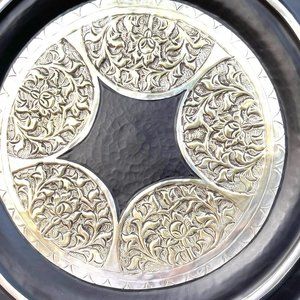 Metal Wall Decor Plate Centerpiece Tray Embossed Stamped Floral Design Hanger