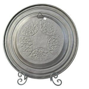 Metal Wall Decor Plate Platter Centerpiece Tray Embossed Stamped Floral Design Hanger 16in Diameter