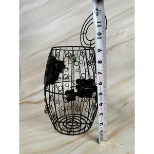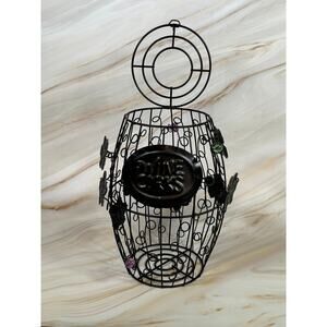Add a touch of elegance to your home bar or kitchen with this Sturdy Metal Wine Cork Barrel. It is a multi-functional decorative holder. Crafted from high-quality metal, this wine cork cage is perfect for storing your favorite bottle of wine corks. The black color and sleek design make it a perfect addition to any modern home decor. With a size of 6.5"L x 6.5"W x 9.5"H, this wine cork cage is lightweight and provides additional storage space. The cage features a single hole on the top and comes with colored glass beads to add a touch of sophistication. Ideal for wine enthusiasts, this metal wine cork cage is a must-have accessory for any home bar or kitchen.