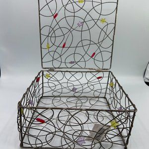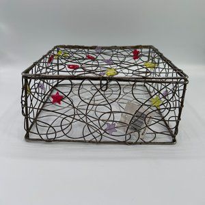 Metal Wire Trinket Organizer Box 7.25" x 7.25" x 3.5" Black Colorful Stars