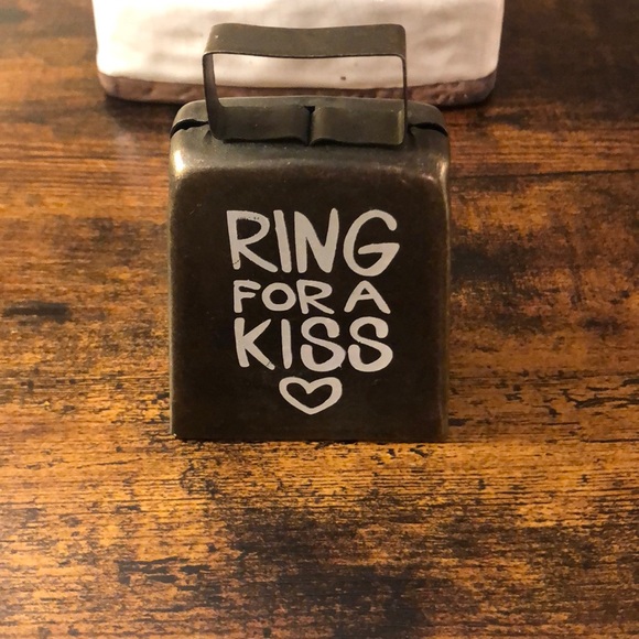 Metal bell ring for a kiss. About 4-5 inches tall and 3 inches wide