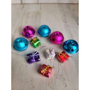 Product not all same brand, mild scratches and marks on all, no ornament hooks on any, purple box bow untied, set of 10