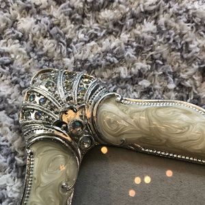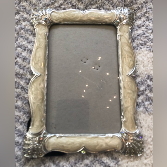 Pearly, white and silver 3.5 x 5” very heavy metal frame with iridescent Crystal Detail! Smoke free home! Perfect condition