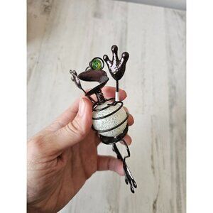 Wire Metal Frog Sculpture Beaded Wire Sculpture Garden Decor Art Garden Statue