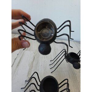 stands about 4.5 in tall by 7-in x 3 in, does have a couple chips on the base and marks at the top of the spiders, otherwise no other problems, very unique