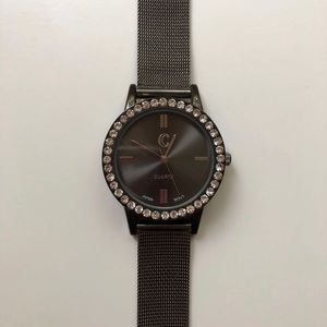 Charming Charlie Grey Metal watch, stainless steel back, fake diamond front. Great condition, worn few times. Needs new battery. Originally $30. Offers welcome!