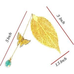 Metal Butterfly Bookmarks for Women Golden Leaf Green Ball Bookmarks New