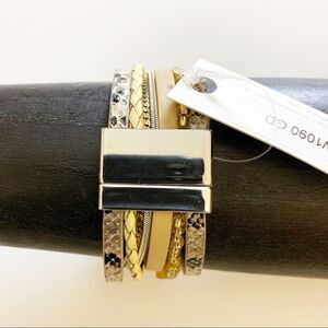 Metal Leaf Layered Animal Print Magnetic Bracelet