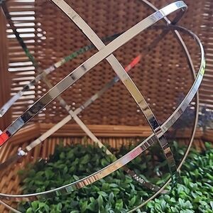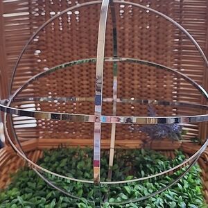 10" soldered silver tone metal orb sphere for lanter urn placement, b9ok shelf, stack of books