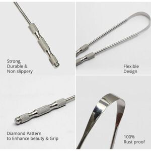 Stainless Steel Best Tongue Scrapper Carved handles to ensure clean tongue and best Metal Tongue Scraper for fresh mouth.