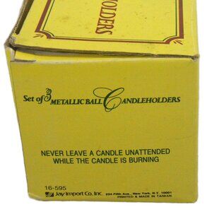 Metallic ball candle holders are in excellent condition, but the box has some damage as seen in the pictures.