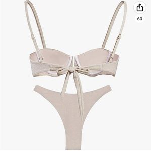 Bikini with gold metallic thread,nude tan color
