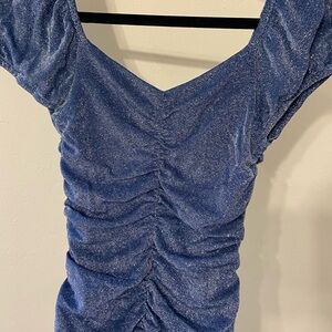 Metallic Blue Ruched Dress