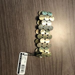 NWT- never worn elastic bands, well hidden, stylish. No scrapes, scratches, or stretching. Silver and gold metallic detail. Sizing for comparison against my 38mm Apple Watch.
