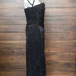 Metallic Brown Strapless Dress with Matching Shawl