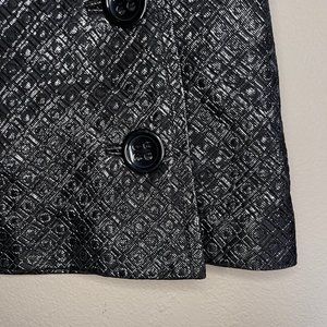 Shiny metallic black with silver embossed patterned skirt, Goth-Barbie vibes