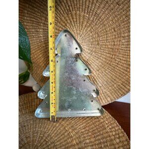Battery-operated silver metal tree with pre-drilled holes for LED lights. Stands upright and features a switch on the back for easy on/off use. Great for adding a rustic holiday glow to shelves, mantels, or festive displays.