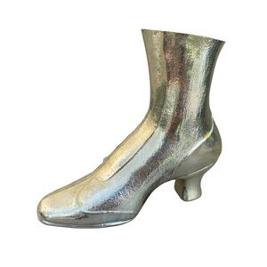 Metallic Chrome Silver Boot Decor Vase