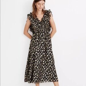 Metallic Clipdot Open-Back Ruffle Maxi Dress