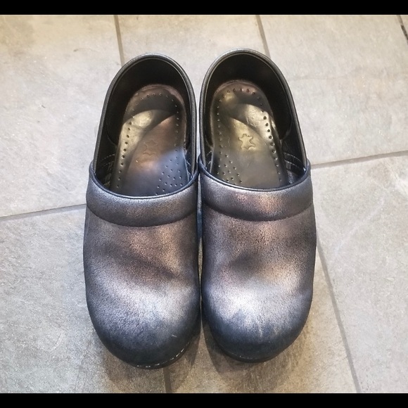 Gently worn Dnasko clogs in a metallic grey color. Wear on toe (see image), soles are in excellent condition! Size 38