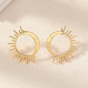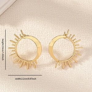 This pair of drop earrings displays a vibrant metallic eclipse stud hoop style. Redefine your look effortlessly with this standout, on-trend piece. 100% ZINC