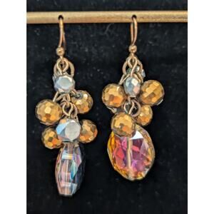 Metallic Faceted Cluster Large Faceted AB Crystal Dangle Earrings. The large crystal picks up so many colors as it reflects the metallic beads. These would look really great dressed up or down. Pre-owned, they are in great condition.