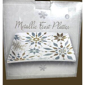 Metallic Frost Square Platter With Gold & Silver Snowflake Design