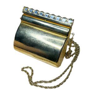Metallic Gold Box Mini Clutch Chain Crossbody Bag Party Cocktail Formal Glam