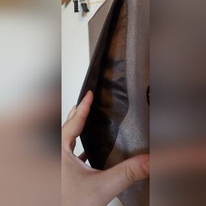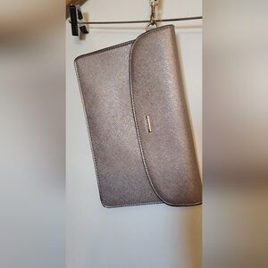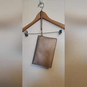 Chic metallic gold clutch with a textured finish. Ideal for evening events.