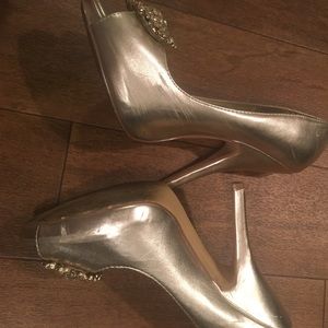 Gold high heels with fun jewel detail on toe. Good condition - slightly scuffed on the inside (pictured) and reflected in price. From a pet free, smoke free home. ๐ฅ