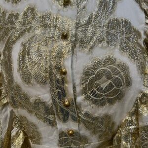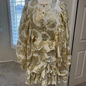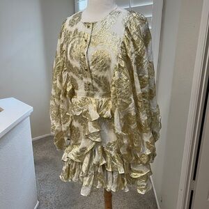 Metallic Gold Jacquard Ruffles Balloon sleeves Mini formal wedding Guest Dress