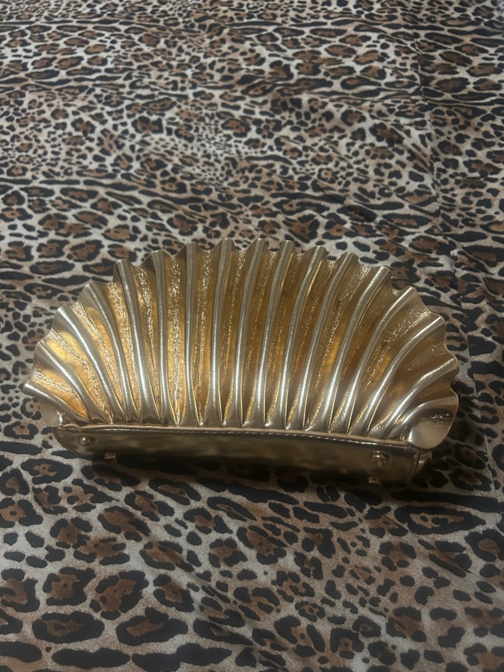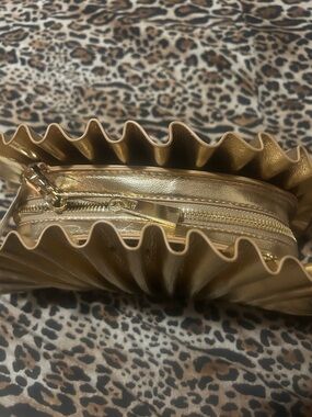 Metallic Gold Ruffled Shell Clutch