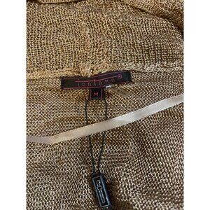 Metallic Gold Sheer Knit Open Front Cardigan By Fontana M