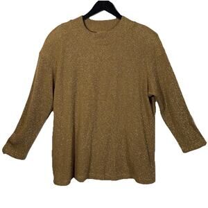 Metallic Gold Sweater Mockneck Pullover Jumper XL 1980s USA Made Glitter Holiday
