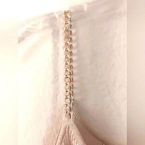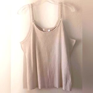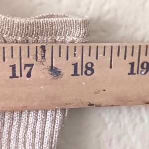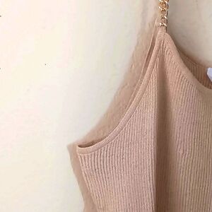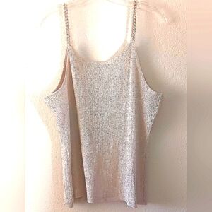 Beautiful tan sweater knit tank / cami with metallic gold thread throughout and gold chain straps. I wore it once for a special occasion. True to size and stretches a lot. Measurements in photos. Like-new!