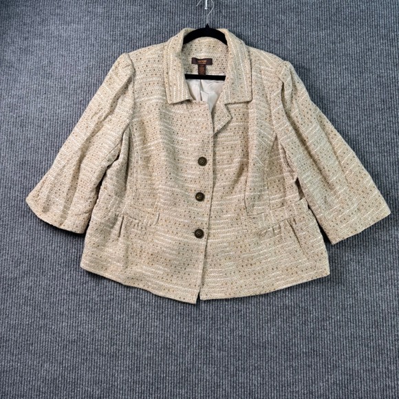 Metallic Gold Textured Tweed Blazer Womens 20W Formal Career Evening Jacket