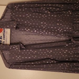 This beautiful sheer top is from Venus. Size 12. color is blue multi but looks more grayish blue in person with silver metallic. Just gorgeous! This top would better suit someone at least 5' 6"-5' 8" in height. It is very long.