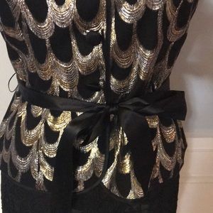 Black, gold and silver jacket with satin buttons and belt.