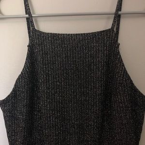 Never worn! charcoal gray with shimmer/metallic hues to it, fits small-medium
