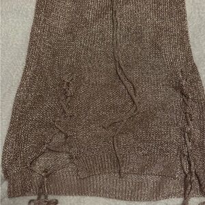 Gorgeous bronze shimmer knit with lace-up detail and halter tie top. Perfect for festivals, nights out, or layering as a beach cover-up.