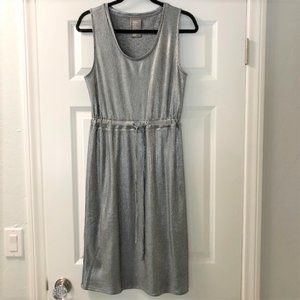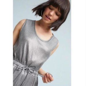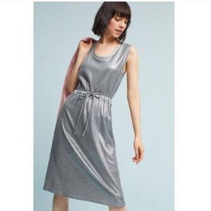Silver metallic sleeveless knit dress from Anthropologie by Dolan Left Coast Collection, elastic drawstring tie waistband and the skirt is lined with a soft jersey knit material